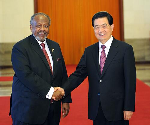 2012年7月18日下午,国家主席胡锦涛在人民大会堂同应邀来华出席中非合作论坛第五届部长级会议开幕式并访华的吉布提总统盖莱举行会谈。