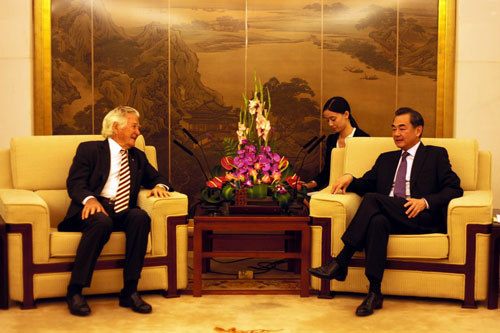 2013年8月14日,外交部长王毅会见澳大利亚前总理霍克。
