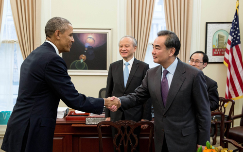 奥巴马请王毅转达对习近平主席的问候,积极评价双方在应对气候变化及解决有关地区热点问题上的合作。奥巴马表示,美中关系十分重要,双方应继续保持沟通协调。他期待着习主席出席将在华盛顿举行的第四届核安全峰会。