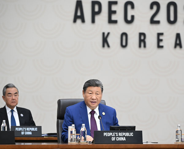 当地时间2025年11月1日上午,国家主席习近平在韩国庆州出席亚太经合组织第三十二次领导人非正式会议第二阶段会议,并发表题为《共同开创可持续的美好明天》的重要讲话。