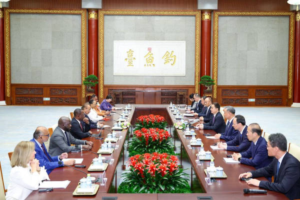 2026年4月22日,国家副主席韩正在北京集体会见出席全球共享发展行动论坛第三届高级别会议的外方代表。